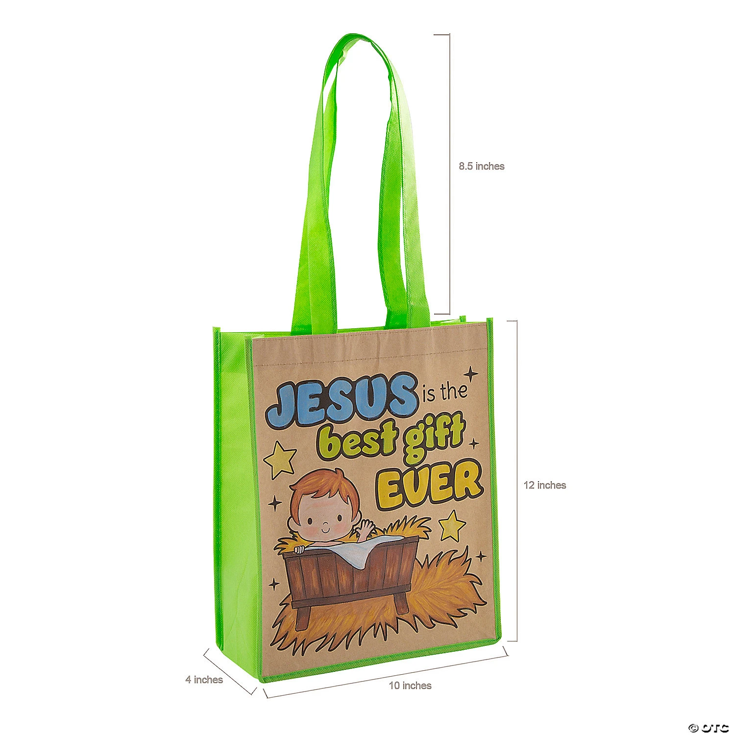 • Durable Quality: Made of sturdy nonwoven material, this sturdy tote bag won’t let you or your accessories down. Plus, you can easily store the reusable bag away until you need it again.• Fun Crafts: With some imagination, this tote bag could be your next creative project. Perfect as a Sunday School craft, this tote bag just needs your personal touch to come to colorful life! • Eco-friendly: Save a tree and go green with this eco-friendly tote bag that is perfect for carrying books, folders and small art supplies. Mother Earth is sure to appreciate the gesture, so go ahead and gift this tote bag to your friends and family while you’re at it! Product Description: Tis the season to be coloring! Celebrate faith and Christmas with these handy tote bags featuring cute Nativity art that is just waiting to be decorated by kids at Sunday School, home or a church holiday party. Each bag has plenty of room inside to carry everyday essentials or presents while gift shopping. © OTC Size: 12″ x 10″ with 8 1/2″ handles.Quantity: 12Material: Nonwoven polypropylene.
