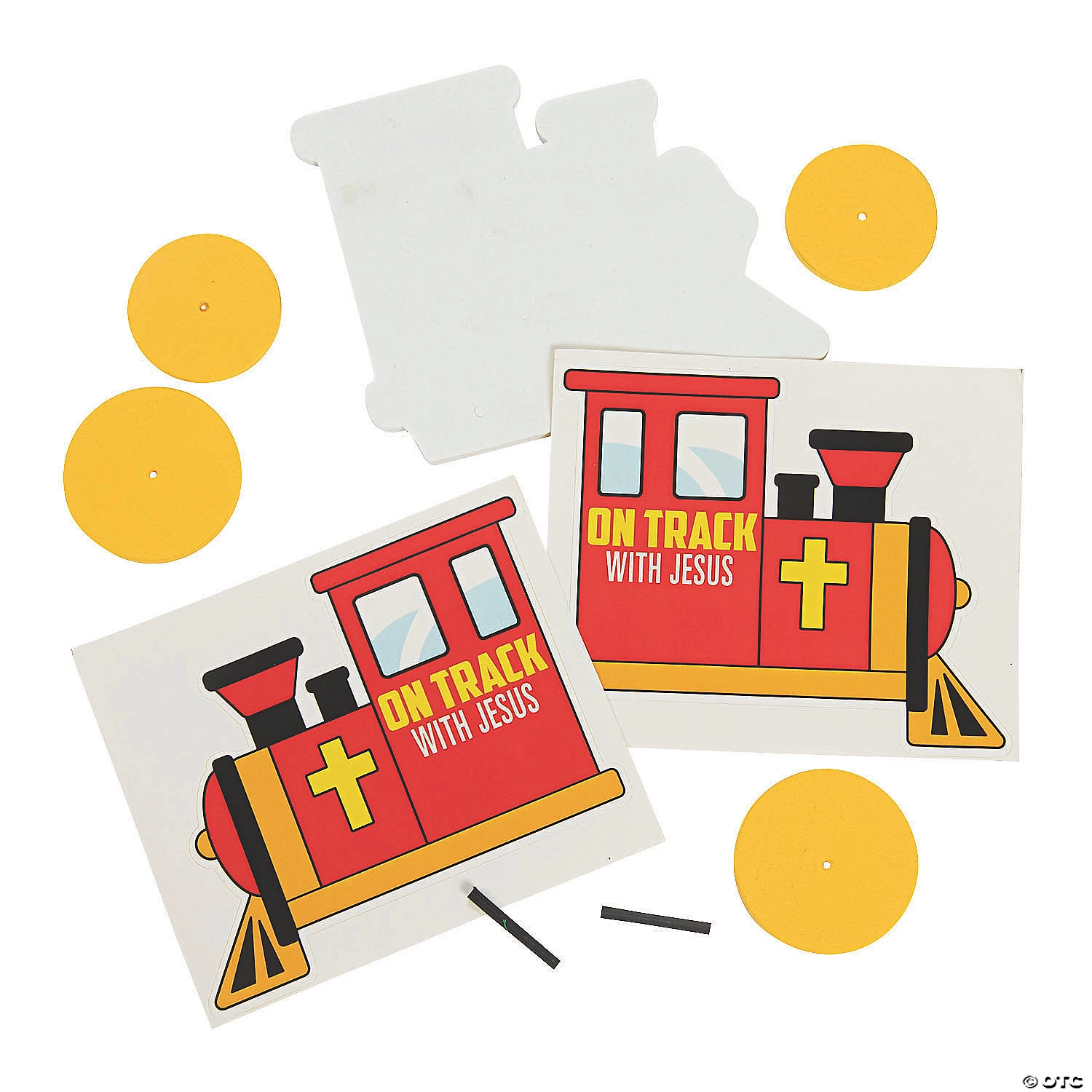Kick start your Railroad VBS theme with this lovely religious craft for kids! With stickers that state, “On track with Jesus,” it fits a Railroad Vacation Bible School theme perfectly. You can also use it for Sunday School arts and crafts activities. Includes foam pieces, wooden dowels and stickers. 4 3/4″ x 4″ All craft kit pieces are pre-packaged for individual use. Kits include instructions. Makes 12. © OTC