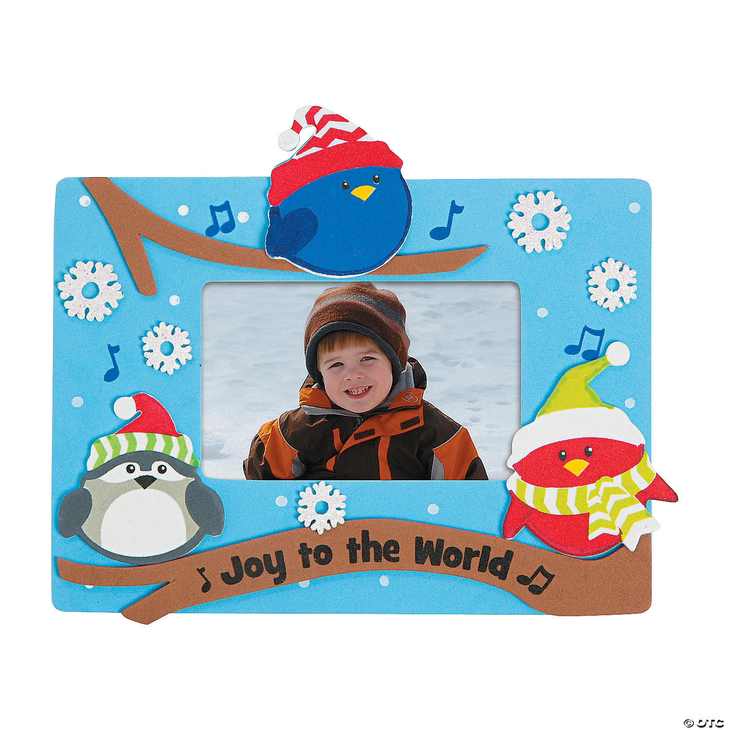 The sweet little Christmas songbirds on this DIY picture frame proudly proclaim “Joy to the World”! Add a photo to this simple winter craft for kids to make a touching handmade gift or Christmas decoration! A fun classroom craft or Sunday school activity this cool winter season. Includes a 6 1/2″ x 4 3/4″ frame with 3 1/2″ x 2 1/4″ photo space. Self-adhesive foam. Makes 12. © OTC
