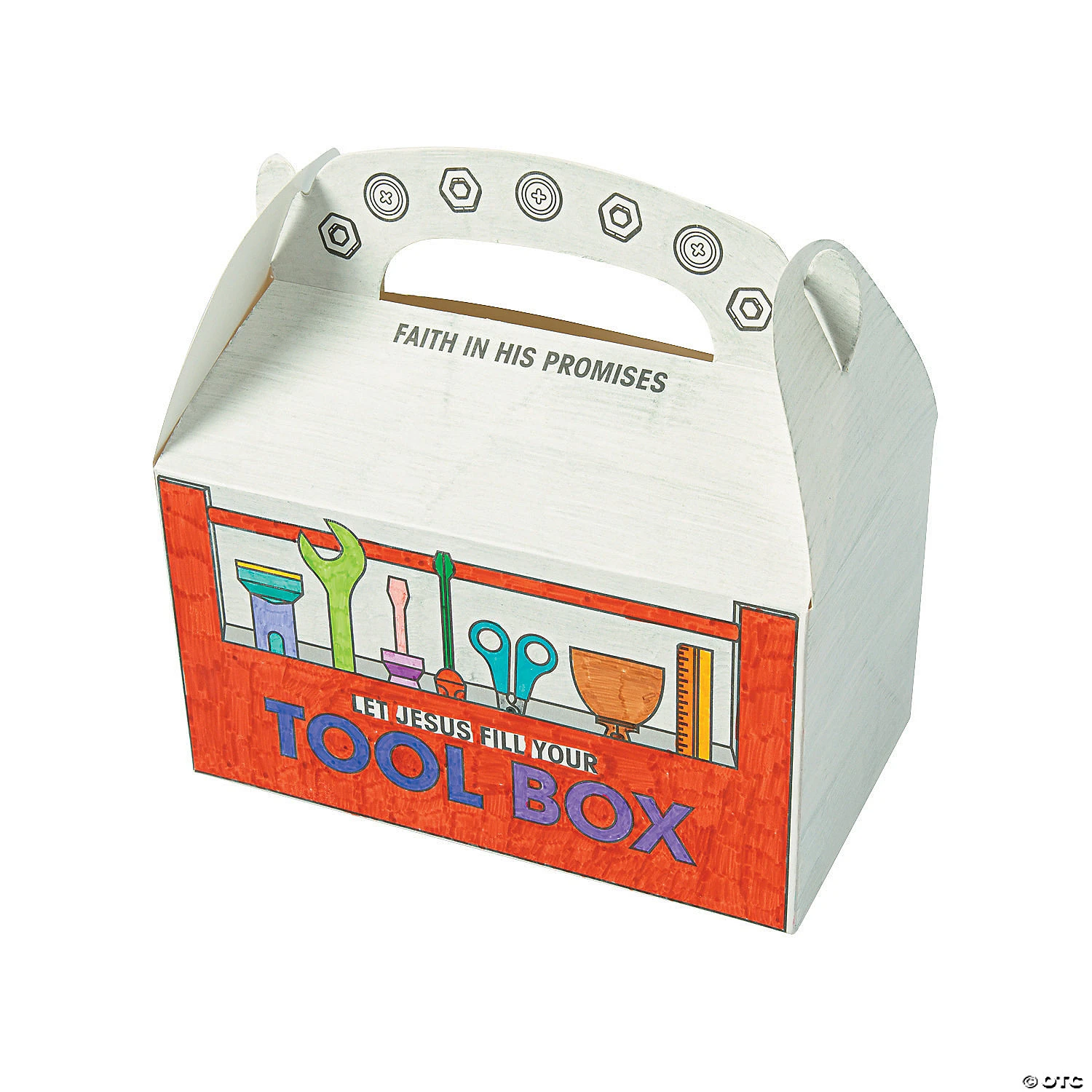 These cute treat boxes are ready for coloring and feature images and messages from Construction VBS. Kids will enjoy coloring the boxes and leaders will enjoy the easy prep and clean-up involved in this simple art project. On the last day of Construction VBS, hand these boxes back out filled with goodies you’ll find here on our website. Cardstock. 6 1/4″ x 3 1/2″ x 3 1/4″ with handle. Simple assembly required. © OTC