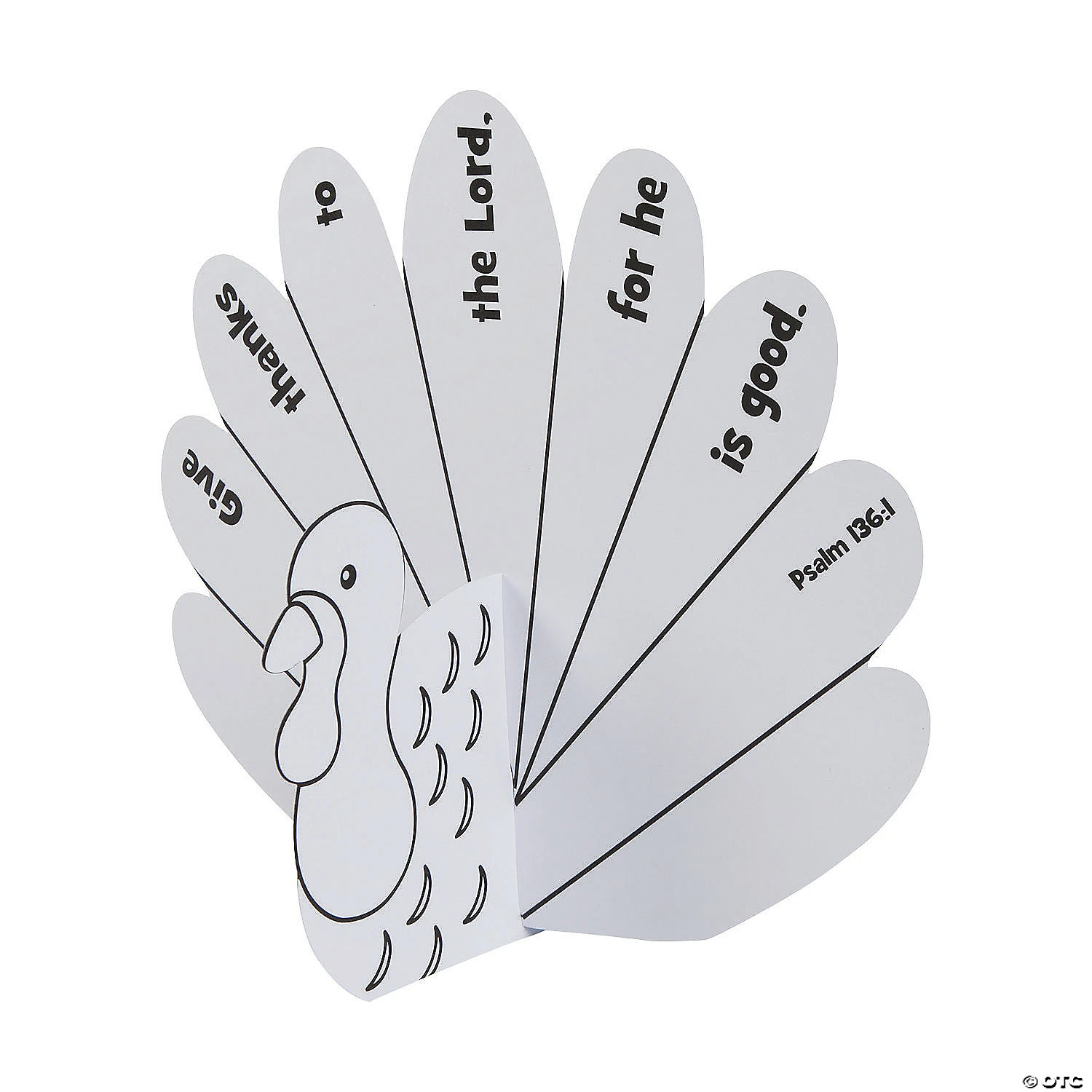 These great Color Your Own Inspirational Turkey Stand-Ups feature Psalm 136:1 – “Give thanks to the Lord, for he is good” – on the turkey’s tail feathers. They’re great arts and crafts project for Sunday School. Teachers will love displaying all of their students’ unique work! Paper. 9″ x 8″ © OTC