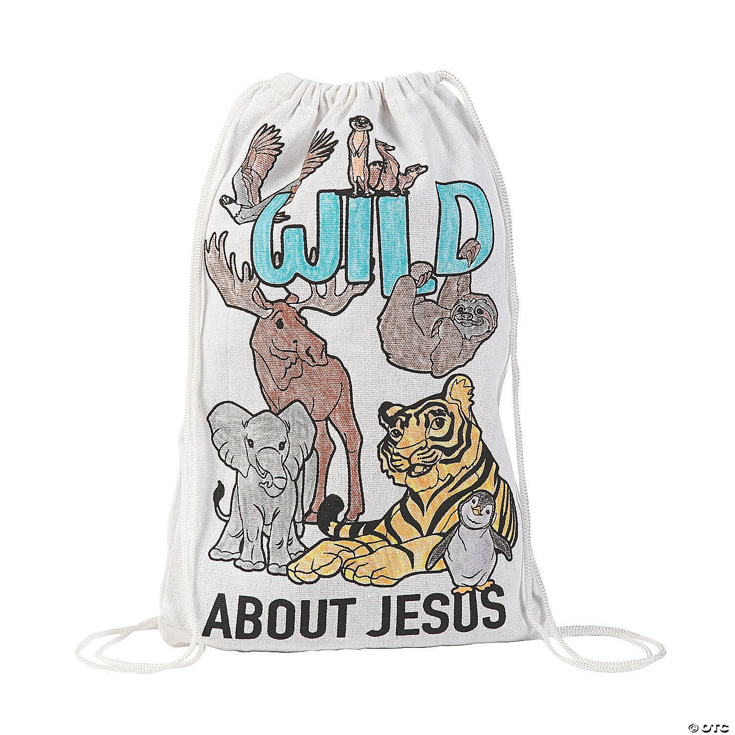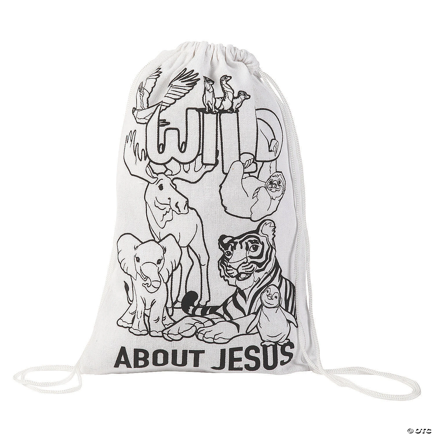 Buy ???? Color Your Own Medium Wild Encounters VBS Canvas Drawstring Bags – 12 Pc. ????
