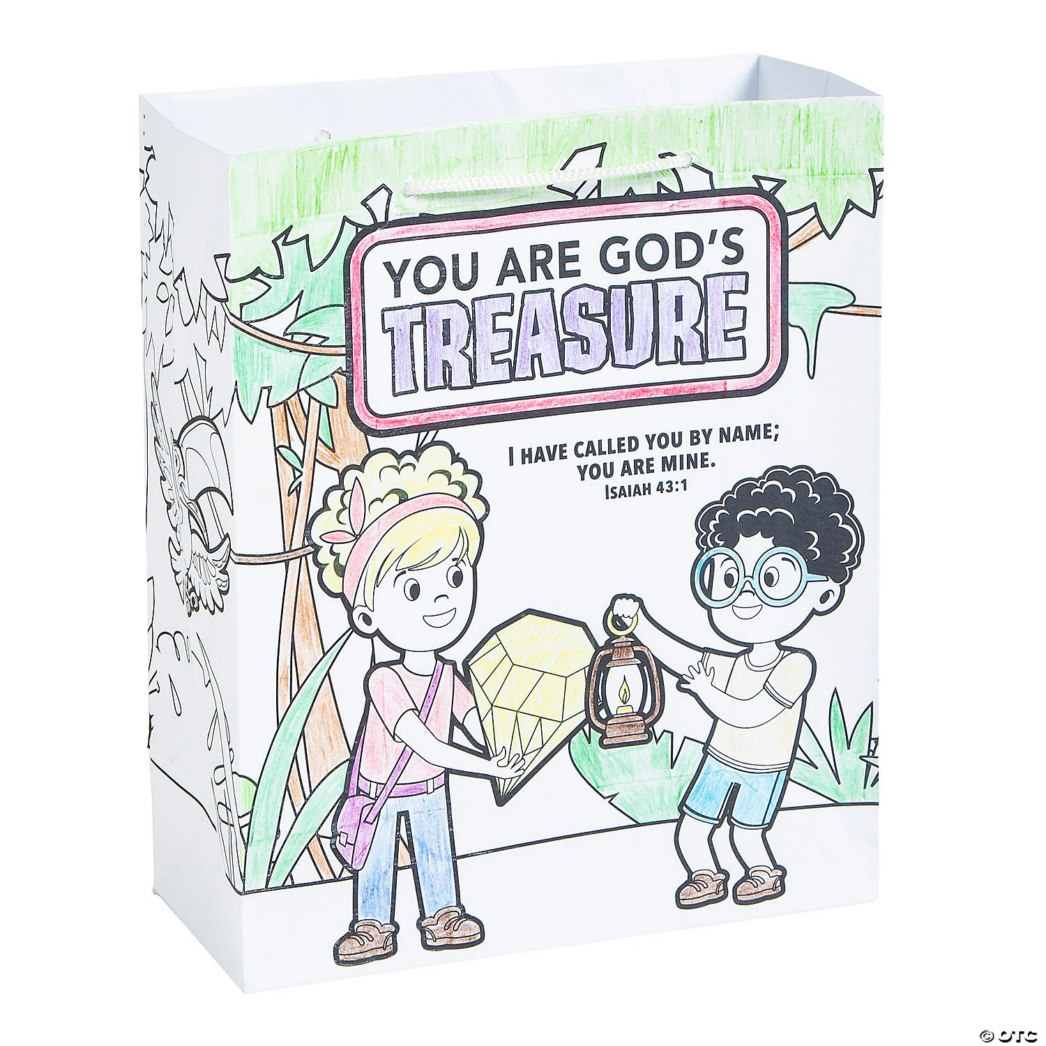 Cheap ???? Color Your Own Treasure Hunt VBS Medium Take Home Bags – 12 Pc. ????