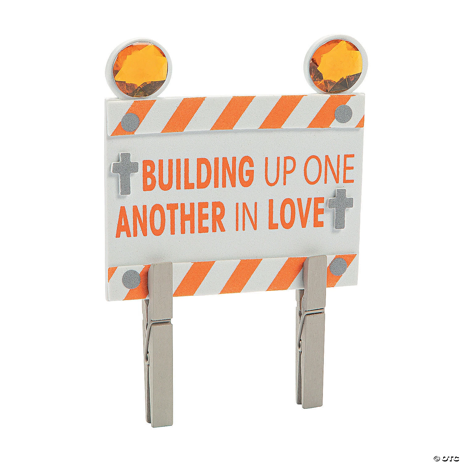 Your crafty crew will love this! Made to look like a barricade with text that reads “Building Up One Another in Love”, this DIY project is a must-have for Construction VBS crafts. With instructions and all the pieces included, this handy kit makes it easy for kiddos to express their faith and creativity! Includes self-adhesive foam pieces, plastic rhinestones and wooden clothespins. 4 3/4″ x 6 1/2″ Makes 12. All craft kit pieces are pre-packaged for individual use. Kits include instructions. © OTC