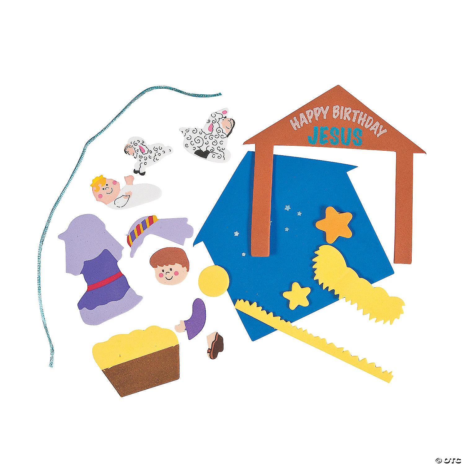 Celebrate His birth with this religious craft for kids. These “Happy Birthday Jesus” Christmas Ornament are an inspirational crafts for Sunday School classes to learn about Jesus during Christmastime. Self-adhesive foam. 5 1/2″ All craft kit pieces are pre-packaged for individual use. Kits include instructions and extra pieces. © OTC