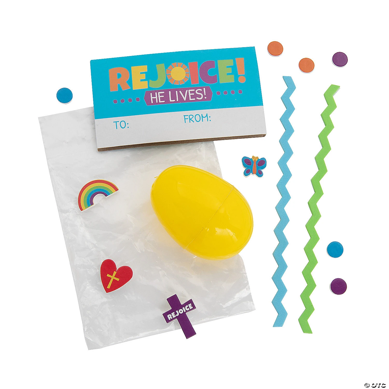 Rejoice in His resurrection! These Easter egg craft kits remind young believers to celebrate the good news that He lives. They also serve as a fun reminder of the real reason we celebrate Easter! Hand these giveaways out to Sunday School students as classroom rewards or as prizes for church Easter egg hunts. Includes self-adhesive foam pieces and cardstock header card with a To/From space. Plastic. Eggs, 1 3/4″ x 2 1/4″; header cards, 4″ x 4 1/2″; bags, 4″ x 6 1/4″. All craft kit pieces are pre-packaged for individual use. © OTC
