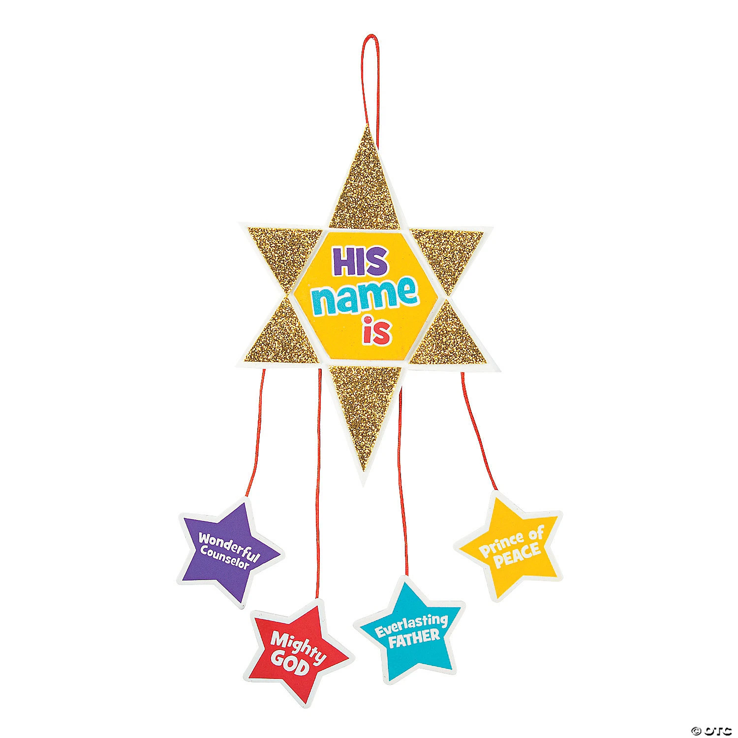 This is a fantastic religious craft for kids! Imprinted “His name is” with hanging stars with the words “Everlasting Father”, “wonderful counselor” and “Mighty God”. Includes self-adhesive pieces and satin cord. 5 1/2″ x 13″ Makes 12. All craft kit pieces are pre-packaged for individual use. Kits include instructions and extra pieces. © OTC