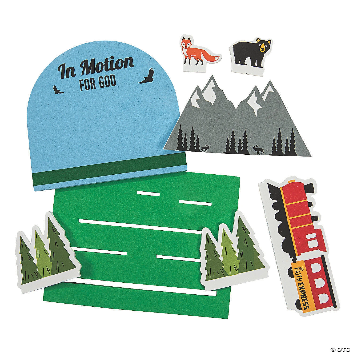 Create a stunning mountain scene! Great for VBS crafts for kids, this kit lets little ones make a stand-up designed with wildlife, big mountains and a train that reads “The Faith Express”. Just think of this as your ticket to fostering creativity and spirituality. Includes self-adhesive foam pieces. 6 1/2″ x 5″ x 5 1/4″ Makes 12. All craft kit pieces are pre-packaged for individual use. Kits include instructions. © OTC