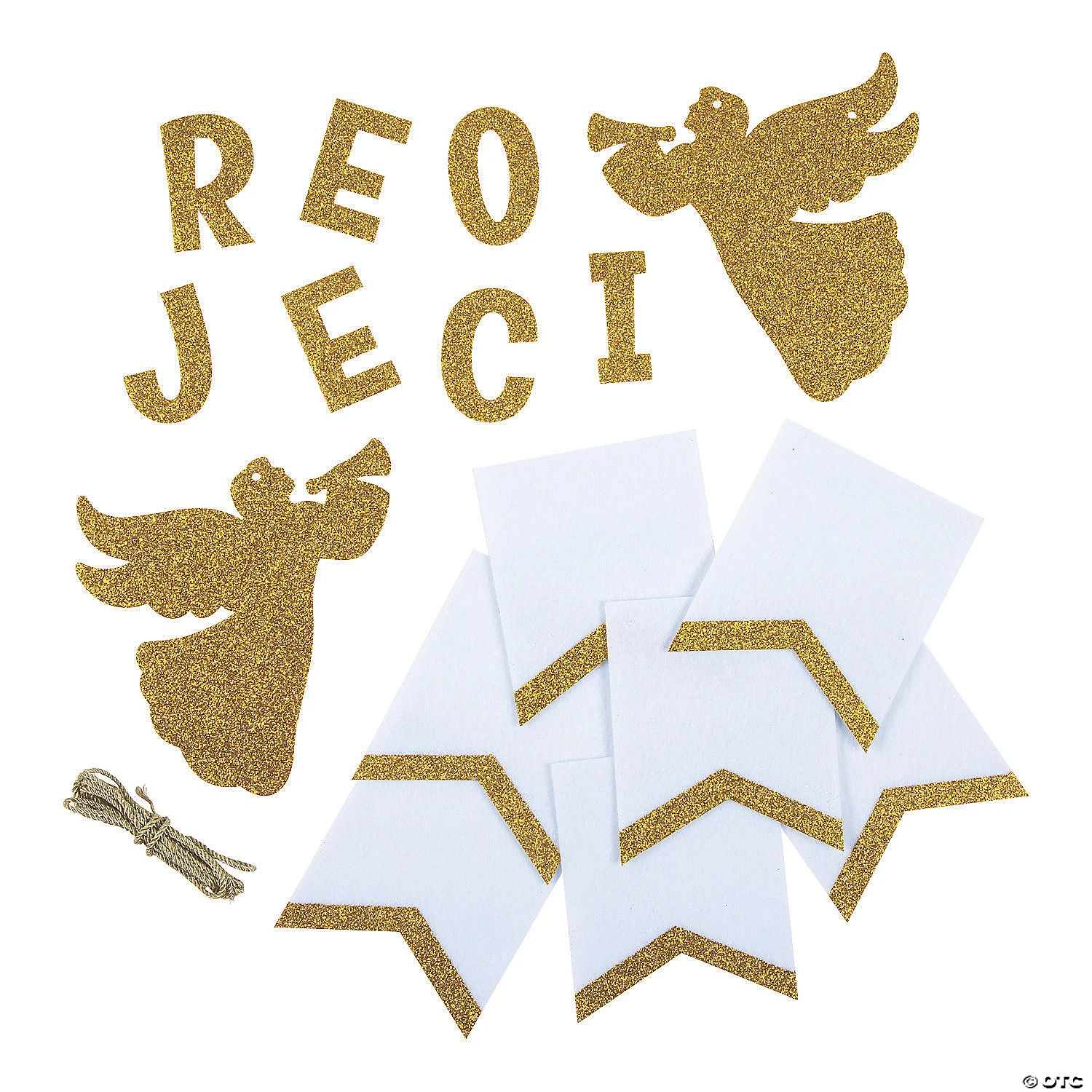 Create your own sparkling holiday décor with this pennant banner craft kit! The glittered garland will look beautiful hung up for a Christmas party or on your mantel all season long. Add it to your collection of white and gold Christmas decorations as the perfect finishing touch. Since this kit has all of the crafting supplies you need, your DIY decoration comes together in a snap! Includes self-adhesive felt pieces and metallic cording. 72″ x 6 3/4″ Kits include instructions. © OTCRejoice Angel Felt Banner Kit Instructions