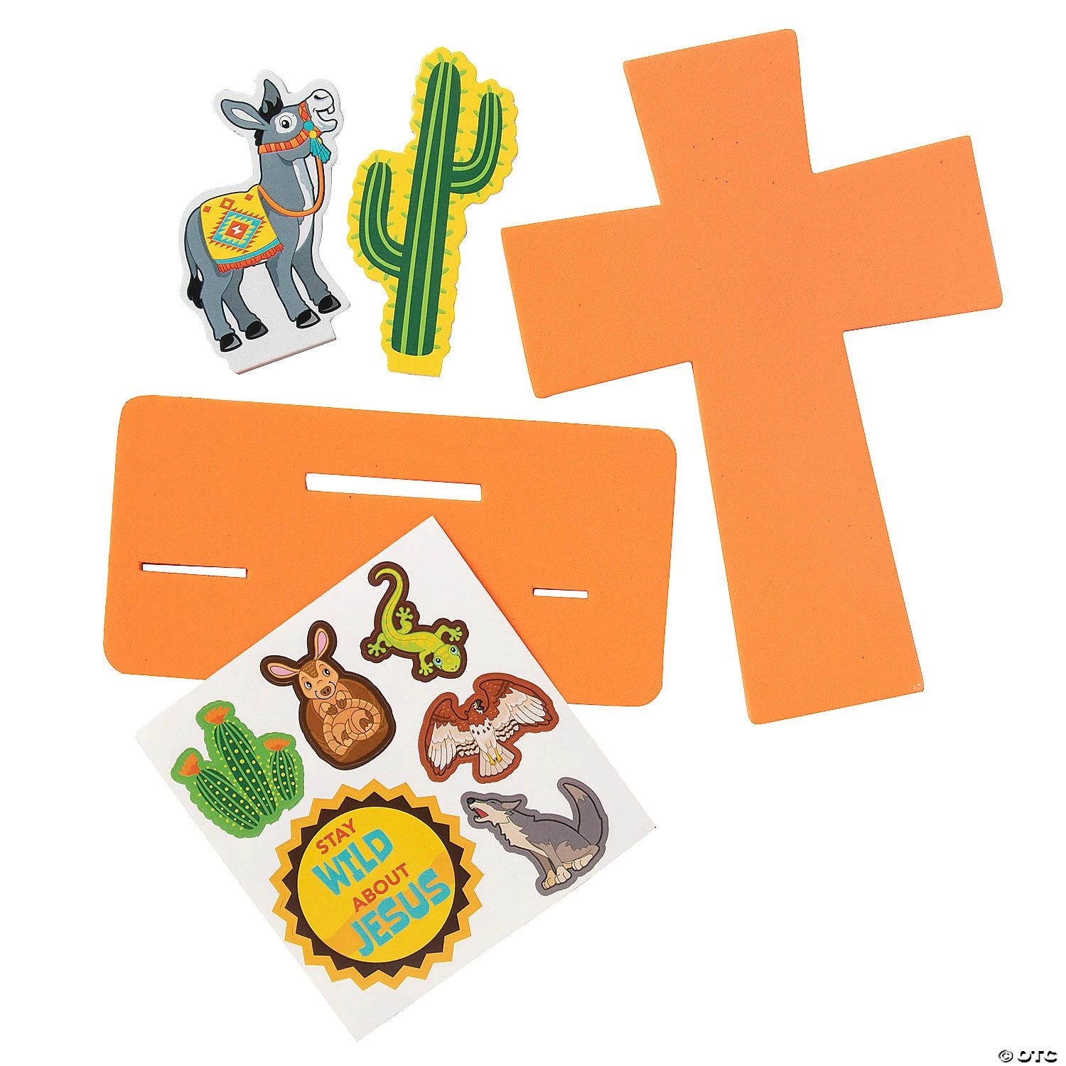 Help VBS kids stay wild about Jesus with this fun craft kit! Featuring Southwest VBS themes and messaging, this stand-up cross is easy to make and even easier to display afterward. Add this kit to your Southwest VBS craft supplies list for an activity kids will enjoy – and craft leaders will appreciate! Includes self-adhesive foam pieces and paper stickers. 6″ x 3″ x 7 1/4″ Makes 12. All craft kits are pre-packaged for individual use. Kits include instructions. © OTCSouthwest Stand Up Cross Instructions