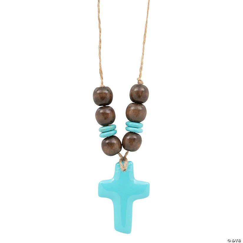 Remove the hassle of offering jewelry craft activities at Southwest VBS with these pre-packaged craft kits. With enough supplies for up to a dozen kids to create their own Southwest VBS necklace complete with a turquoise-look cross charm, this craft kit will quickly become a favorite among VBS kids and craft leaders alike! Includes 2″ resin charm, 1/2″ wooden beads and 36″ hemp cording with plastic breakaway clasp. 24″ circ. Makes 12. All craft kit pieces are pre-packaged for individual use. Kits include instructions. © OTCSouthwest Turquoise Necklace Instructions