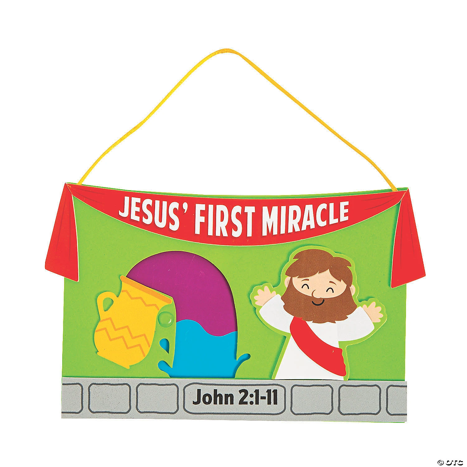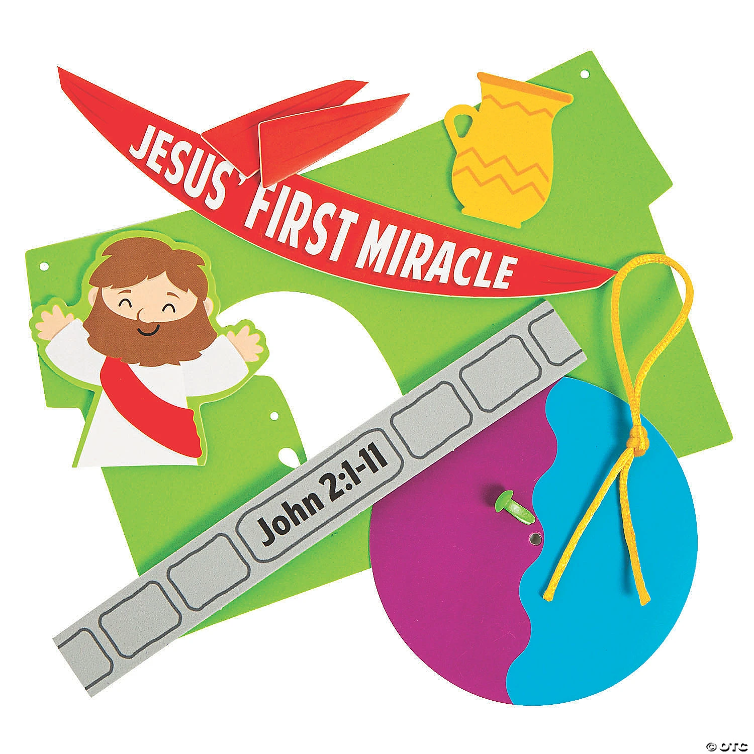 It’s said when Jesus turned water into wine at the wedding in Cana, it was his first recorded miracle. It was an important moment – one that young Christians should learn about. This fun craft kit lets kids easily create the scene out of John 2:1-11, making it the perfect craft to accompany a lesson on the Gospel of John or a Sunday School lesson on miracles. With no messy glue needed, leaders will appreciate the easy clean-up of this craft. Includes self-adhesive foam pieces, metal brads and satin cord. 8″ x 5″ Makes 12. All craft pieces are pre-packaged for individual use. Kit includes directions. © OTC