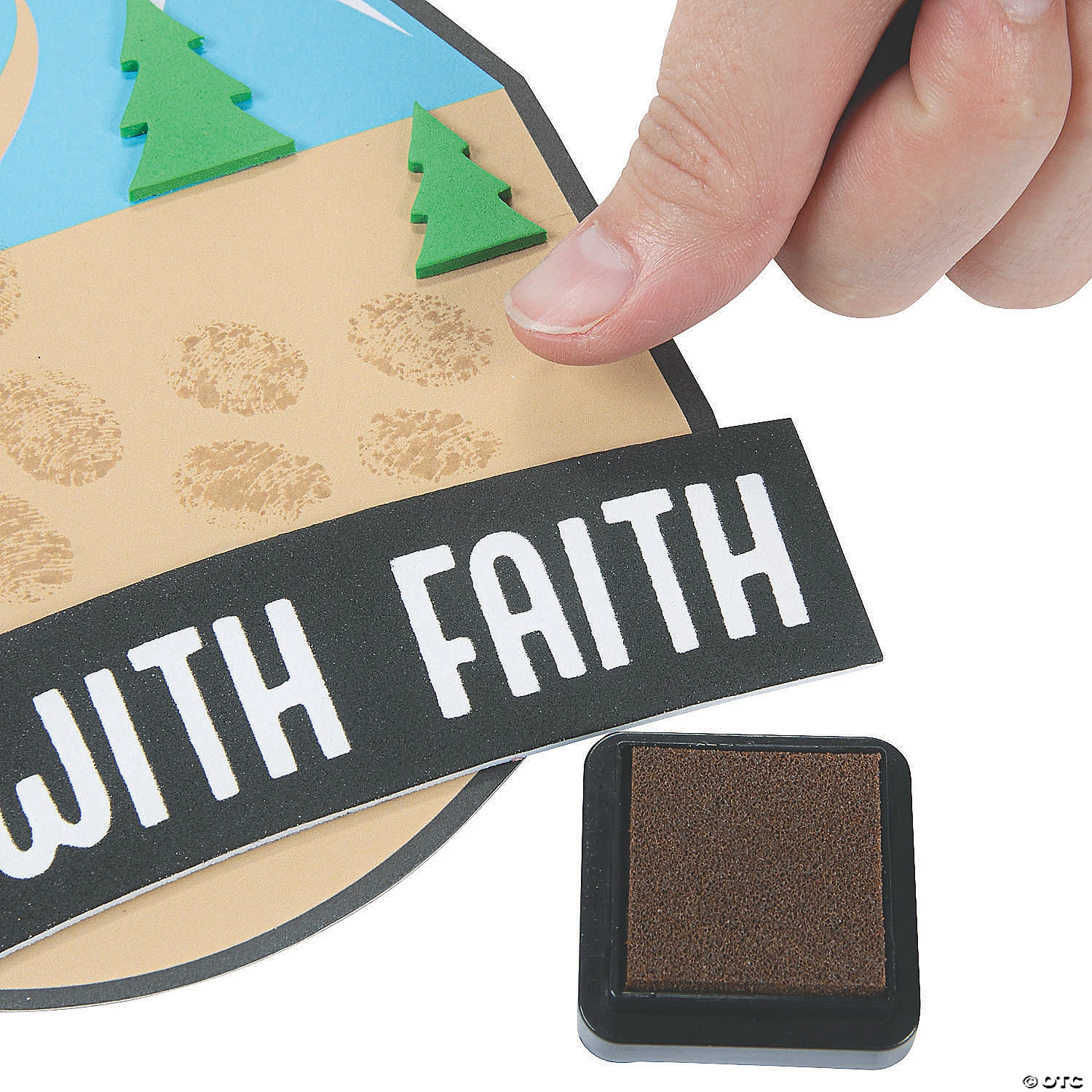 Little believers will love putting their unique stamp on projects like this! A fun addition to VBS arts and crafts, these magnets feature a hike-inspired design of mountains and trees with text that reads “Trek with Faith”. To make the finished craft even more special, kiddos will have a blast printing their thumb all over it to look like shoe marks in the path. Includes self-adhesive foam pieces and a stamp pad. 6″ x 6″ Makes 12. Safe and non-toxic. Conforms to ASTM D-4236. All craft kit pieces are pre-packaged for individual use. Kits include instructions. © OTCWild Encounters VBS Thumbprint Magnet Craft Kit Instructions